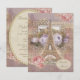 Elegant French Eiffel Tower Parisian Bridal Shower invitations with a beautiful printed shabby chic collage of vintage music sheet, pretty jewels, pink roses and spring flowers and the Eiffel Tower. On the reverse of the invites is a glamourous antique printed pearls and lace mat with pretty brown text for you to personalize with your party details Classy, trendy, girly invites. Perfect for a spring or summer shower. PLEASE NOTE - ALL INVITATIONS ON ZAZZLE HAVE FLAT PRINTED IMAGES. Pearl mat by ©Hazel Kinvig-Paul www.design-a-dream.co.uk If you need assistance customizing your product please contact me through my store. I will be happy to help. I have matching products in my store.