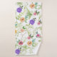 This Shabby Chic Floral Bath Towel Set has pink flowers, yellow flowers, purple flowers, and red flowers on a field of green leaves.