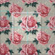 This fabric features vintage pink roses with green leaves on a neutral tan background.