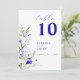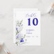 The wedding table number card features a prominent number “10” in an elegant red font at the centre. The left side of the card is adorned with a beautiful floral design in shades of blue, ivory, and grey, complemented by green foliage. The white background enhances the vibrant colours, making this table number card a stylish and sophisticated choice for wedding receptions. Ideal for couples seeking elegant and memorable table decor for their special day.