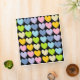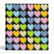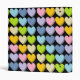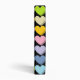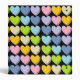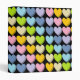 Abstract digital art of pastel rainbow coloured hearts with their lighter colour mimicking a shadow from each one. Colours include pink, gold, ecru, lime green, pastel blue, blue/grey, and lavender against a black background.