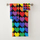 Abstract digital art of rainbow coloured hearts with their lighter colour mimicking a shadow from each one against a black background.