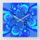 Shades of Blue Modern Abstract Fractal Art Square Wall Clock