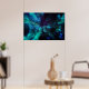Shades of Turquoise and Sapphire Blue Stars, Planet and Nebula in Space.