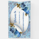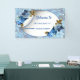 Shades of Blue watercolor Hydrangeas & bronze leaves wedding theme, some with gold geometric frame trimmings to personalize welcome wedding banner