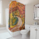 The painting depicts autumn enveloping the forest. The colours explode with reds and oranges. The forest path encourages walking. The graphic looks spectacular on the shower curtain.