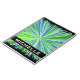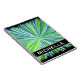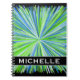 This vibrant notebook design features a pattern of lines coloured different shades of green and blue bursting outward from a central point, on a black background. It also features a custom name.