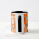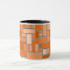 This mug has a Bauhaus design of various sized rectangles in various shades of orange on a field of black.
