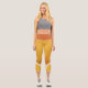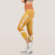These modern workout leggings feature trendy shades of yellow and orange with customizable name on both sides in white all caps font. The waistband is plain orange