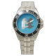 Has heft and feel of expensive stainless steel quartz watches. Good band with safety catch. I removed links, which is easy because engraved arrows show direction to push the linking pins. As always by this seller, the image (a railroad logo) is a perfect reproduction of my emailed image, and is precisely spaced and aligned.