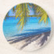 Shadows of a palm tree on the beach of Takapoto, an island in the Tuamotu atoll in French Polynesia.