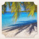 Shadows of a palm tree on the beach of Takapoto, an island in the Tuamotu atoll in French Polynesia.