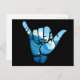 Shaka sign with waves crashing indicating a friendly hand sign to take it easy and relax in this beautiful state.