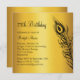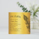 A light wispy peacock feather decorates this invitation on a gold coloured background. It is shown on the signature: semi-gloss paper; however, the pearl shimmer is a nice option.