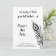 A large peacock feather in black decorates this Hens Party Invitation on a white background with the cute saying, Get Ready to Shake your Tail Feathers! making it perfect for a night on the town dancing to celebrate the bride.