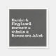 'Hamlet and King Lear and Macbeth and Othello and Romeo and Juliet' Shakespeare plays on a grey background. Victorian literature.