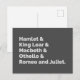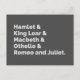 'Hamlet and King Lear and Macbeth and Othello and Romeo and Juliet' Shakespeare plays on a grey background. Victorian literature.