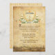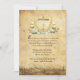 This old world styled birthday invitation was inspired by the 1993 film adaptation of William Shakespeare's Much Ado About Nothing. The design features a royal crest at the top with a yellow chateau style building, and a royal crown surrounded by the crest border. The bottom of the crest has a floral arrangement and a banner where you can personalize with the birthday girl or boy's name. The wording of the invitation is in an old English font and says "The honour of thy presence is requested for feasting and merriment at a festival banquet to Honour our Lady Natalie on the 16th year of her birth. Thursday the 24th of July at 5 O’clock in the evening. Please wear white." All of this text can be edited to meet the needs of your upcoming party. The back side of the invitation has an all-over old-world pattern.