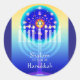 Shalom at Hanukkah Menorah Lights & Star of David. Classic Round Sticker