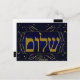 Shalom! Greetings for all purposes. Send a card with graphic impact. Perfect as a greeting card, Hanukkah card or for a holiday party invitation. Add your own personalized messages on the back or make a great party invitation. Complete a coordinated elegant set: In our store zazzle.com/celebrationsevents* see matching Postage Stamps, Invitations, Announcements, Greeting Cards and more!