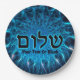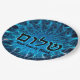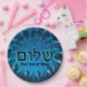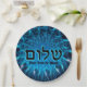 Shalom On Blue Fractal Paper Plate