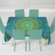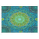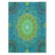 A fusion of Tantric and Lotus mandala techniques representing Earth and air elements. This 52" x 70" cotton tablecloth features vibrant green and turquoise colours symbolizing nature and air, inspiring awareness of climate change. Made in the USA, this tablecloth adds elegance and a touch of environmental consciousness to your dining decor.