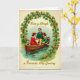 This card shows a vintage-style scene of a small wooden boat gliding across calm turquoise water, carrying three well-dressed friends close together 💚. A man in a green jacket and bright yellow trousers holds a paper and leans in with a gentle smile toward the woman beside him, as if sharing a private joke or sweet note. She wears a scarlet dress with a matching cloche hat and looks down at the page, her posture relaxed and comfortable next to him. On the other side, a second woman in emerald green steadies a paddle, her red hat echoing the other woman’s and her calm expression keeping the moment cozy and unhurried. Around the scene, a curved border of green shamrocks and small golden-yellow flowers forms an arch, like a leafy doorway framing the trio ☘️. The phrase “Erin go Bragh” appears at the top in gold lettering, while “A St. Patricks Day Greeting” sits along the bottom in matching gold text. Behind everything, the background is a warm, creamy tone, and the water is drawn with soft ripples under the boat.