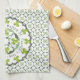 Brighten up your kitchen with this tea towel featuring a Celtic inspired pattern of interlocking curved shapes in muted green hues that is interspersed with brighter green shamrocks or three leaf clovers that symbolize Ireland, St. Patrick’s Day and the Christian Trinity. Text is easy to customize.