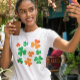 Shamrock Clover Green and Orange Ireland Irish Flag Colors Irish Pride St Patrick's Day Lucky Elegnat Chic T-Shirt. (The colors on the leaves are uneven, that's part of the design, not a print error.)