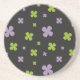 Seamless floral pattern, lucky green and purple shamrocks on black background.