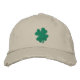 Cool St Patricks Day embroidered hat features a big green shamrock four leaf clover in green, on a khaki (or other colour) background. Great for irish pride or the st patricks day holiday.