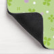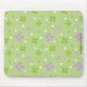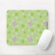 Seamless floral pattern, lucky green and purple shamrocks on green background