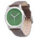 The watch looks really great! Very sharp and well done. The leather band is really nice, though for a man's watch I think it should be longer. Unfortunately, it isn't big enough for my husband's wrist but I will get a replacement because he is very excited to wear it!