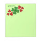 A cute note pad for St. Patrick's Day or any day with a green four leaf clover and red hearts.