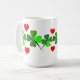 Digitally designed pattern consisting of two pairs of shamrock facing each other over two red hearts.