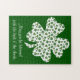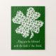 Give friends and family a unique St. Patrick’s Day greeting with this 11” x 14” customizable jigsaw puzzle with an image on dark green of a four-leaf clover filled with shamrocks and top hats on white and an Irish blessing. See the entire St. Patrick’s Day Puzzle collection under the HOME category in the HOLIDAYS section.