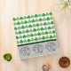 This design features a pattern of green shamrocks, horses, and horseshoes.