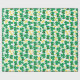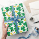 This gift wrapping paper features a fun and festive St. Patrick's Day pattern. The leprechaun's hat, green shamrocks and gold coins appear on a white background.