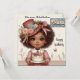 A dear little vintage girl holding a cake and celebrating her birthday. The Greeting on the card is "SHANA Happy Birthday". On the back of the card is a small version of the same child, with plenty of room to write a message. Made with the assistance of AI Bing (CoPilot).
