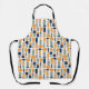 This apron has a mid-century modern design of ovals and rectangles in patterns repeating in the design.