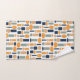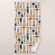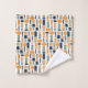 This towel set has a mid-century modern design of ovals and rectangles in patterns repeating in the design.