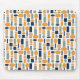 This mouse pad has a mid-century modern design of ovals and rectangles in patterns repeating in the design.