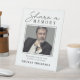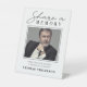This elegant and minimalist Share a Memory sign is the perfect way to invite guests to share their memories of your loved one. It features a stylish photo frame for a personal touch. Customize it with your own message and photo.