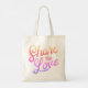 Tote bag features the phrase 'Share the Love' in pink gradient script.