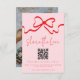 The wedding photo-sharing enclosure card design showcases a bold red ribbon bow atop a soft pink background. Combined with elegant fonts and funky script, it exudes a modern yet chic and charming vibe that captivates recipients. This unique style sets the tone for an exciting celebration ahead, delighting guests upon receiving the card.