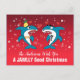 Cartoon Christmas Sharks on red with Personalised Typography Text Postcards.