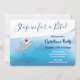 A shark-themed invitation for a Christmas party. The invitation tells your guest to "Stop in for a Bite!". The invitation features a smiling, cute, shark in a Santa Hat. The text can be customized.