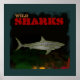 Cool printed illustration about sharks for your room or office walls. An image of a shark fish and a black grunge background with the words "wild sharks" in a red colour font. An exclusive mixedworld creation only sold here