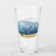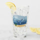 Glass tumbler with cute, but somewhat worried-looking cartoon shark.