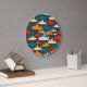 Simple but sweet shark pattern clock in navy, teal, red, orange, yellow and grey.